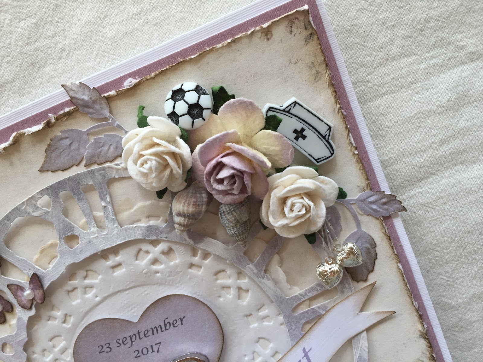 Ett kort där beställaren ville ha ett romantiskt lite "shabby chic" kort. Så här blev min tolkning. Hoppas beställaren blev nöjd och att lilla Sophia fick en fin födelsedag!